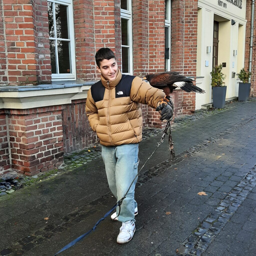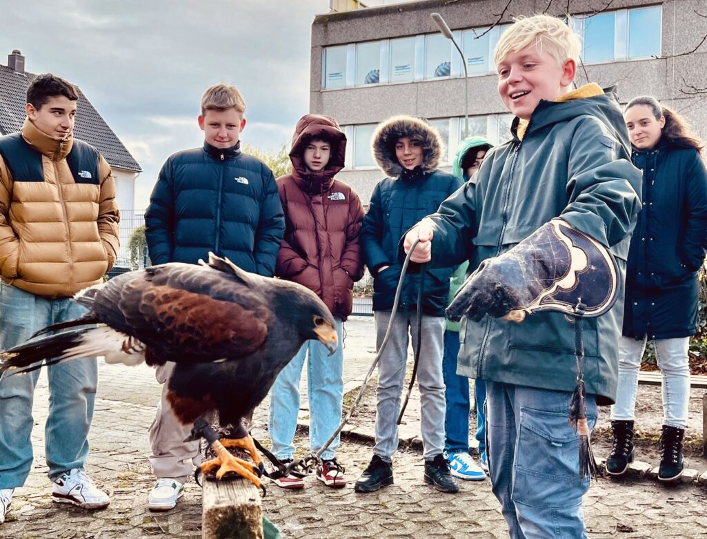 Familie Schnurbusch ist seit vielen Jahren Partner unserer Schule und besucht uns regelmäßig mit ihren beeindruckenden Falken, Uhu und Schneeeule.