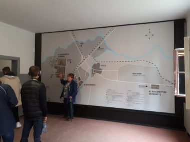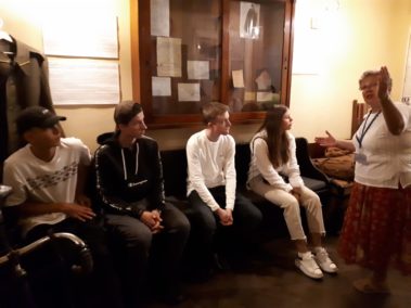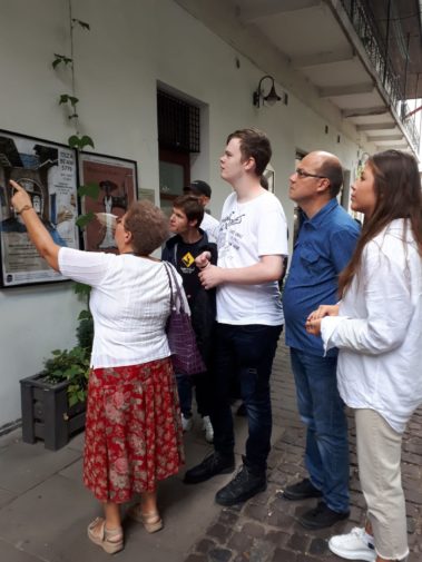 Erste Station war das ehemalige jüdische Viertel von Krakau. Vor Beginn des 2.Weltkrieges lebten 65.000 Juden in Krakau. Nur die sogenannten „Schindler-Juden“, ca. 1200, überlebten den Holocaust. Aus diesem Grund besuchten wir nach dem Kazimierz mit seinen Synagogen und dem alten Friedhof auch die ehemalige Fabrik von Oscar Schindler. Dort befindet sich heute ein multimedial gestaltetes Museum, welches Krakau während der deutschen Besatzungszeit thematisiert. Weitere Räume beschäftigten sich mit Oskar Schindler und seiner Emailwarenfabrik. Unsere Stadtführerin zeigte uns die Originalschauplätze, an denen der Spielbergfilm „Schindlers Liste“ gedreht worden ist.